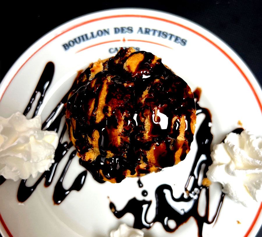 Traditionnels desserts français faits maison : de la crêpe Suzette au Baba au Rhum, en passant par "LA" Profiterolle géante.